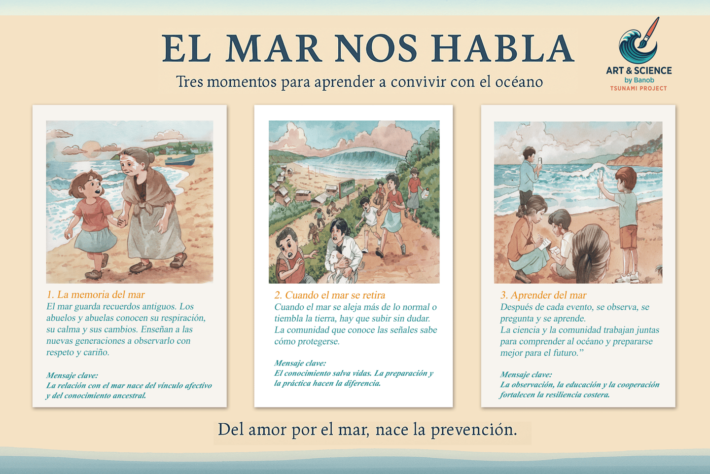 Los tsunamis marcan comunidades y dejan huellas en la memoria colectiva. La transmisión del conocimiento construye resiliencia, mientras que el arte genera empatía, memoria y aprendizaje.