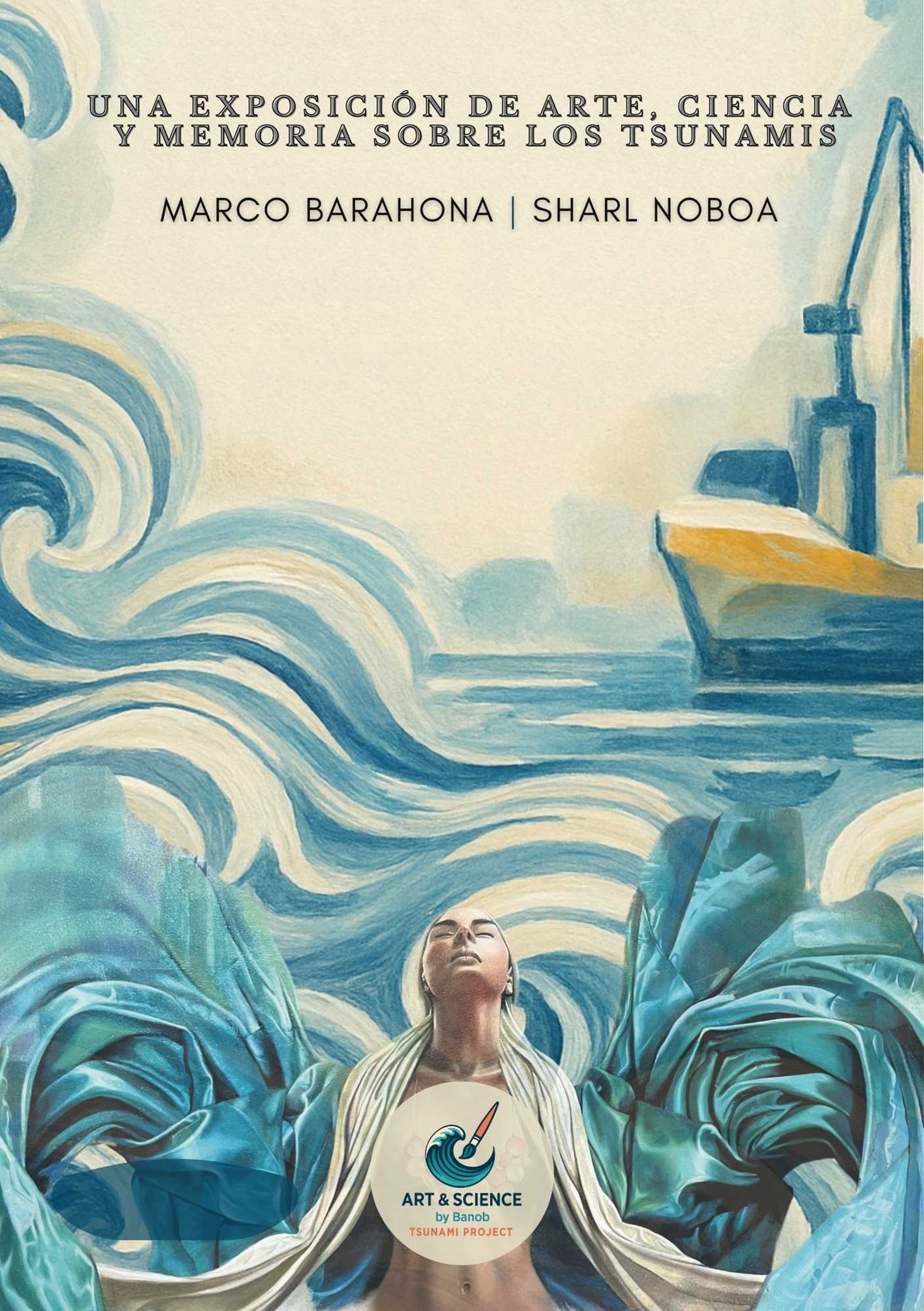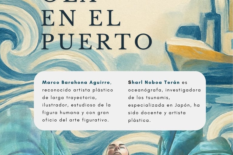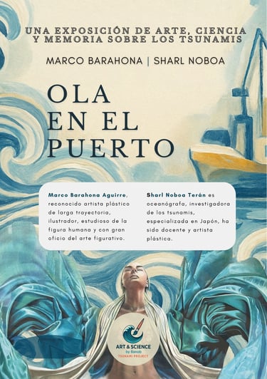 Ola en el Puerto” es una novedosa propuesta multidisciplinaria de BaNoB, que integra la ciencia de tsunamis (Sharl Noboa, oceanógrafa) y el arte visual (Marco Barahona, artista). Se articula una narrativa sobre resiliencia y memoria, combinando obras simbólicas con visualizaciones científicas para fomentar la conciencia y el aprendizaje significativo
